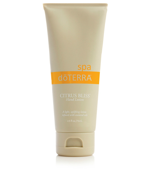 doTERRA Spa Citrus Bliss Hand Lotion is a light and silky lotion that leaves hands feeling soft and smooth while awakening the senses with the uplifting scent of the Citrus Bliss essential oil blend. Infused with hydrating seed oils and nourishing botanicals, this non-greasy formula absorbs quickly yet provides optimal moisture for healthy looking hands. Known for its energizing scent, Citrus Bliss essential oil blend turns this formula into an aromatic lotion that can be massaged into the hands and experienced throughout the day. Packaged in a convenient 75 mL tube, Citrus Bliss Hand Lotion is perfect for carrying in your purse or for use while at home or work.